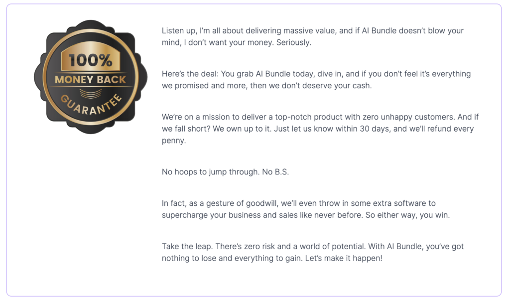 Yes, we offer an iron-clad 30-day money-back guarantee. If you’re not completely satisfied with AI Bundle, just let us know within 30 days, and we’ll refund your purchase—no questions asked!